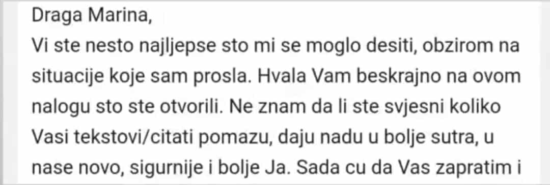 Ako imaš nejasnoća, možeš me kontaktirati putem mejla marinapuzic1@gmail.com. Moj cilj je da ti pomognem da napreduješ i osnažiš se.