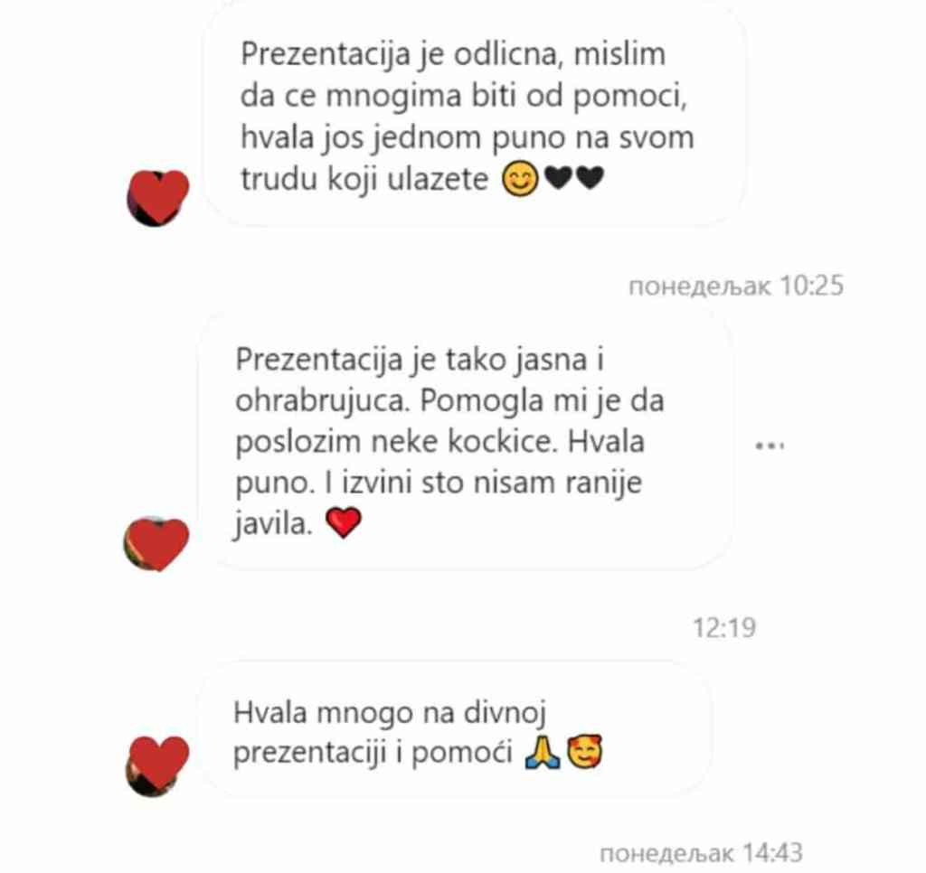Evo šta kažu žene koje su (i pre ovog mnogo sadržajnijeg programa od svega do sada), iskusile rad sa mnom kroz knjige ili prezentacije.